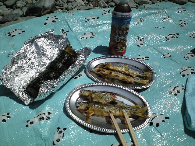 おにぎりとかは持参。あゆを具代わりにして食べるとこれまた美味い!!僕は頭から尻尾まで骨ごと食べた。