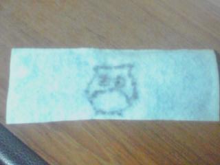 風邪らしきもの回復。記念(?)として、寝てる間相方に描かれたミミズクのイラスト。